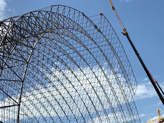 (2)网架加工前应对现场尺寸进行复测,确认无误后方可进行加工、安装;网架制作、运输、安装应遵守《空间网格结构技术规程》JGJ7-2010、《钢网架衡阳螺栓球节点》JG/T 10-2009、《钢网架衡阳螺栓球节点用高强度螺栓》 GB/T 16939-2016、《衡阳钢结构衡阳工程衡阳施工规范》 GB50755-2012、《衡阳钢结构衡阳工程衡阳施工质量验收标准》 GB50205-2020。